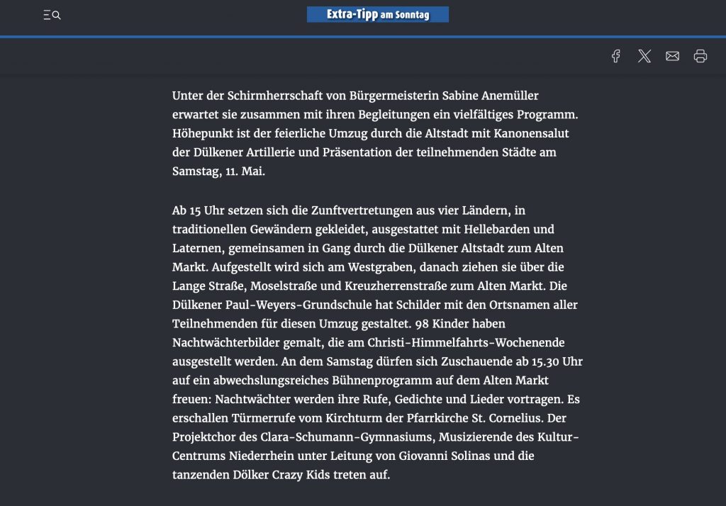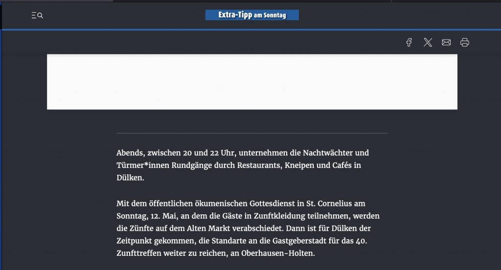 Home über mich Kontakt Termine öffentliche Rundgänge Kosten Bücher und mehr Videos europäische Nachtwächter- und Türmerzunft Presse Kommentare Impressum Datenschutz-Grundverordnung Presseberichte… Screenshot